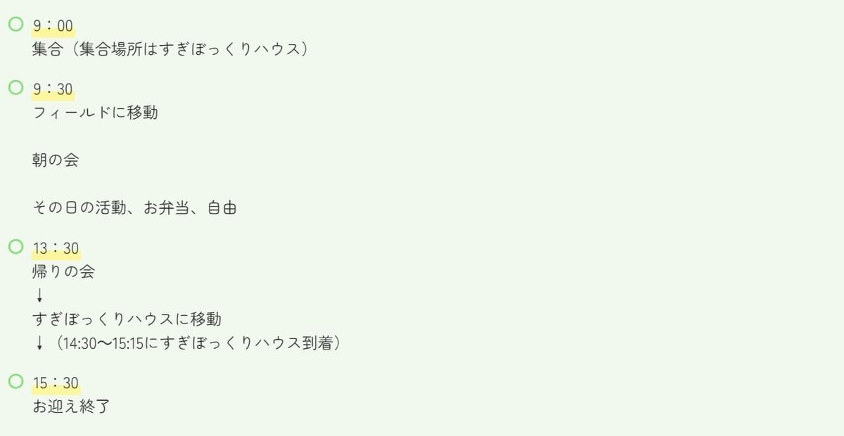 ※朝(8:00-9:00)と夕方(16:00-19:00)の延長保育も可能です(料金:1,000円/時間)